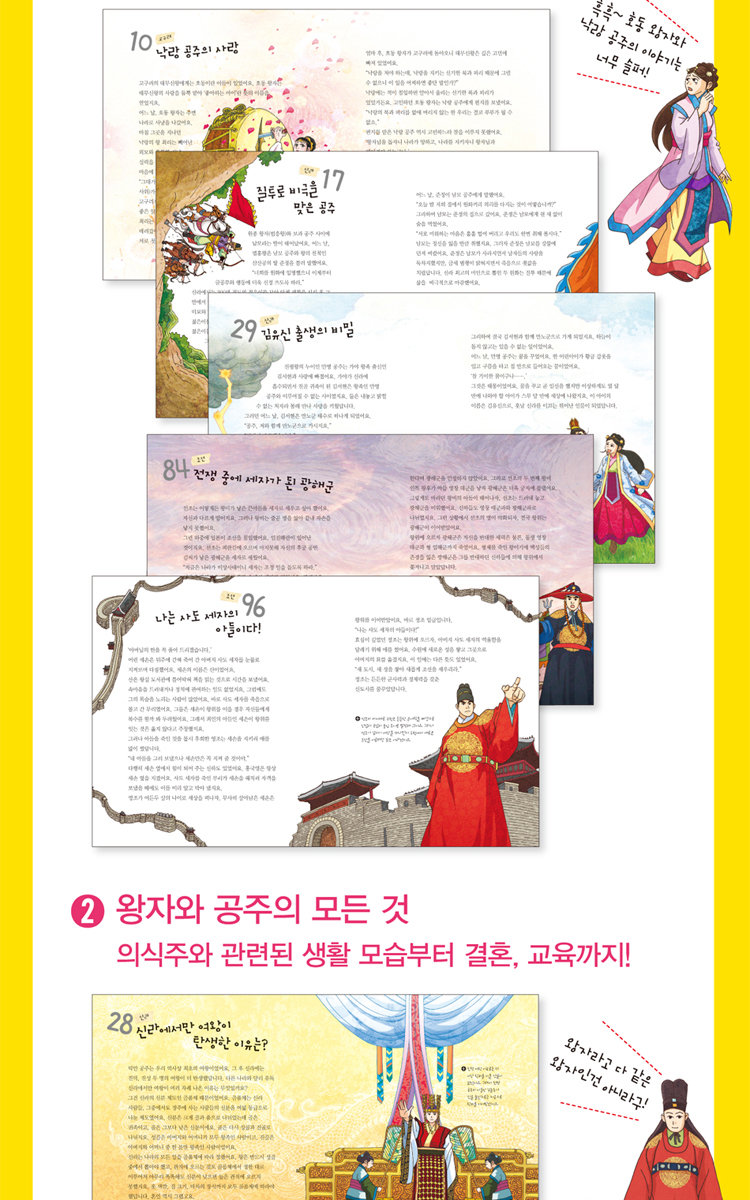 마를 팔아 씩씩하게 생계를 이어나가다 선화 공주와 혼인을 하고 백제의 왕이 된 서동, 생사를 초월한 애절한 사랑을 했던 공민왕과 노국 공주, 새로운 조선을 꿈꾸었던 개혁가 소현 세자, 그리고 우리나라의 마지막 황녀 덕혜 옹주의 기구한 삶까지, 우리 역사 속 왕자와 공주의 이야기를 만나보세요.