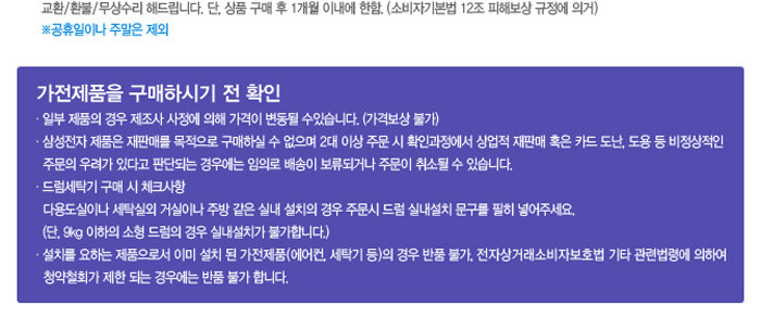 - 지정 배송일은 주문하신 당월 내에서만 가능합니다. (시간지정 불가능 : 배송 당일 기사님과 조정)