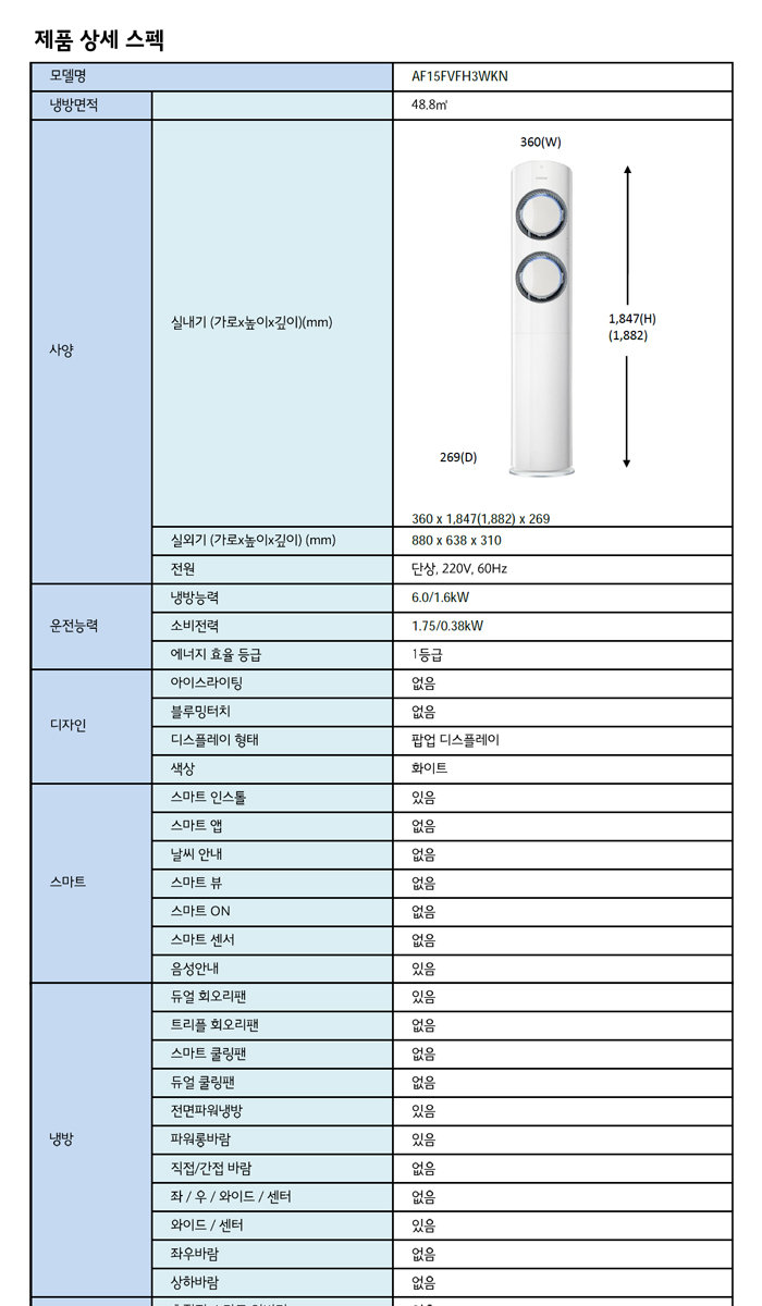 - 모델명 : AF-15FVFH3WKN (실외기 모델명 : AF15FVCH1DAX)