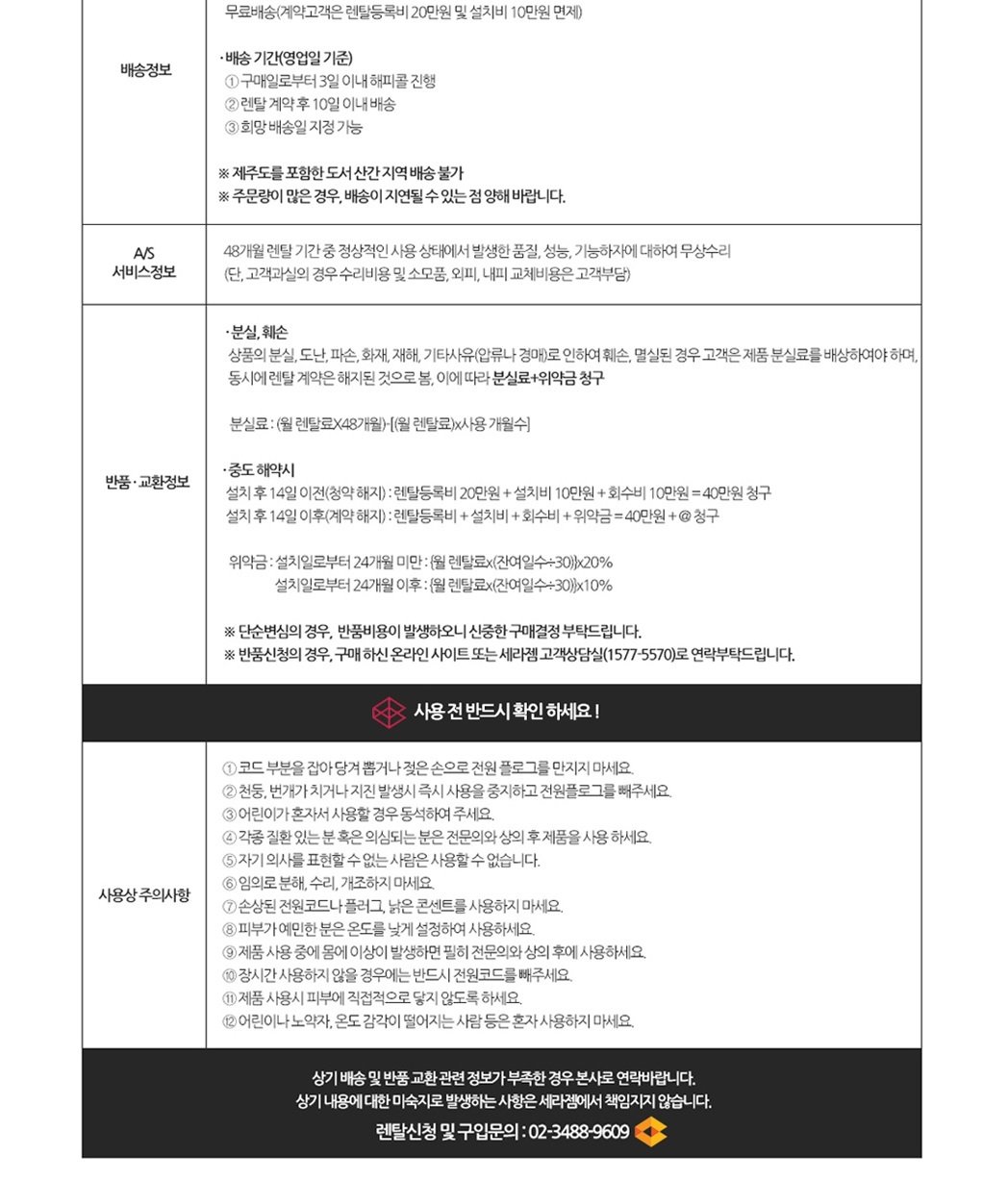 - 결제방법 : 신용카드자동결제,자동계좌이체 / 48개월간 무상 A/S(단 고객과실 제외)