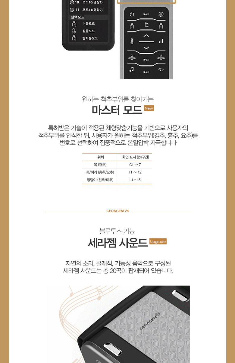 기능 : 근육통 완화를 위한 척추 의료기기