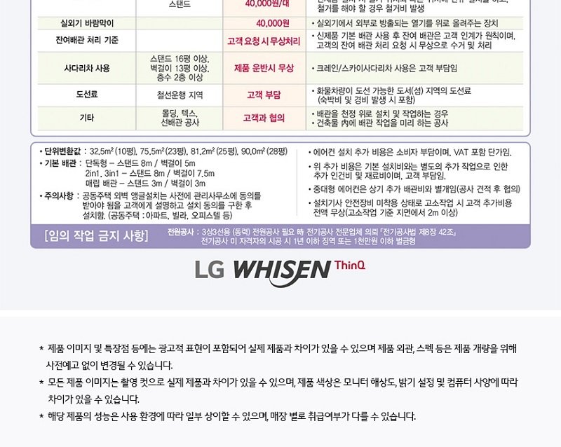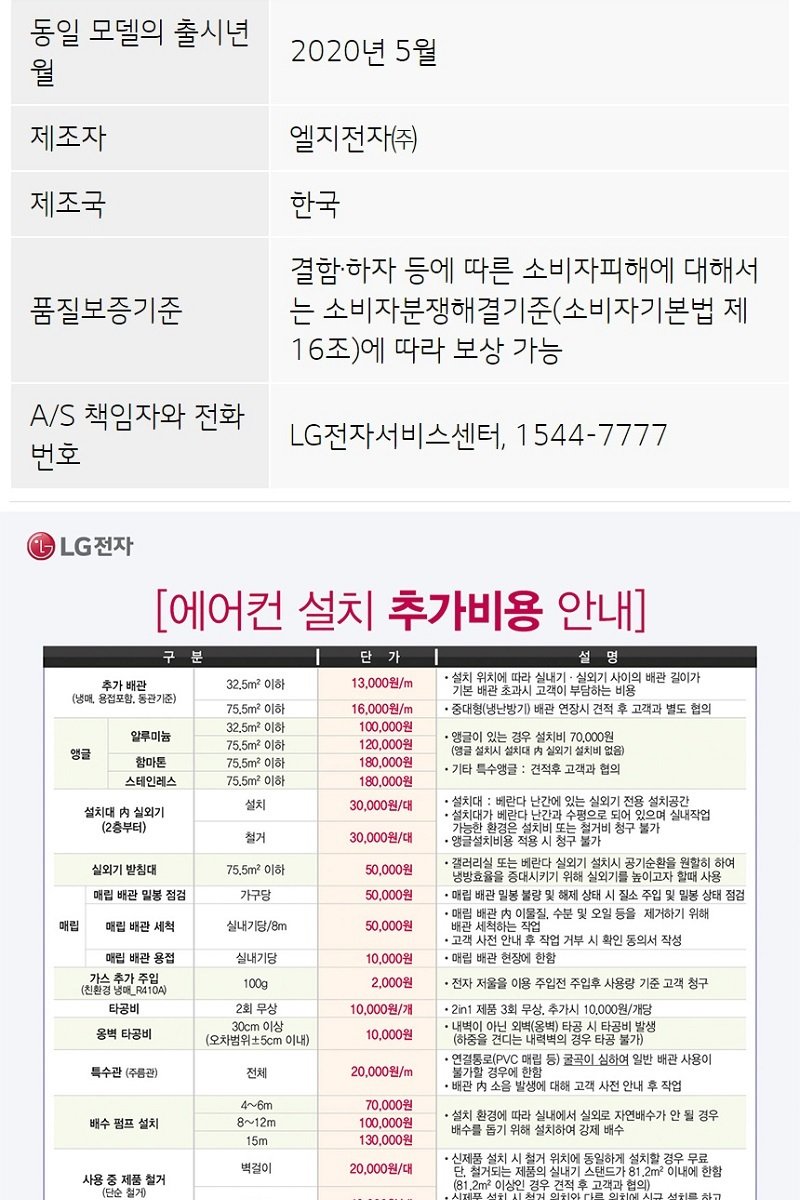 3. 설치 및 서비스 - 에어컨 설치 및 추가비용: 해피콜시 자세한 상당 가능(설치 기사 방문 시 설치 비용 고지 후 고객 동의 시 설치 진행)