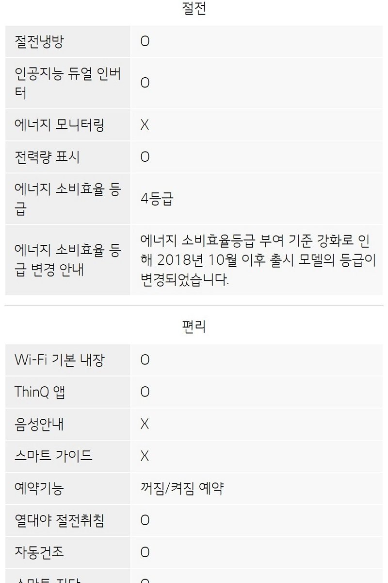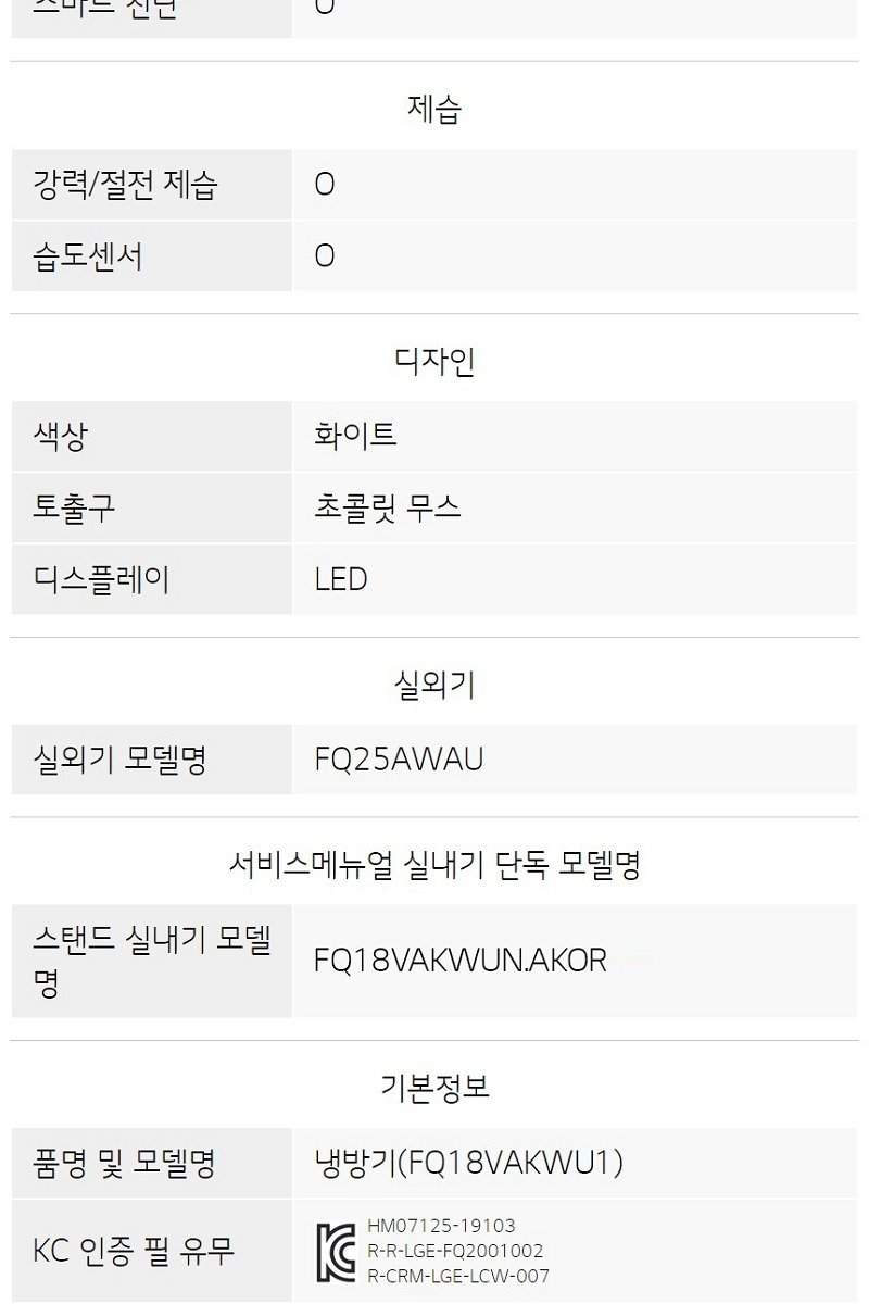 └ 제조원 / 원산지: LG전자 / 한국