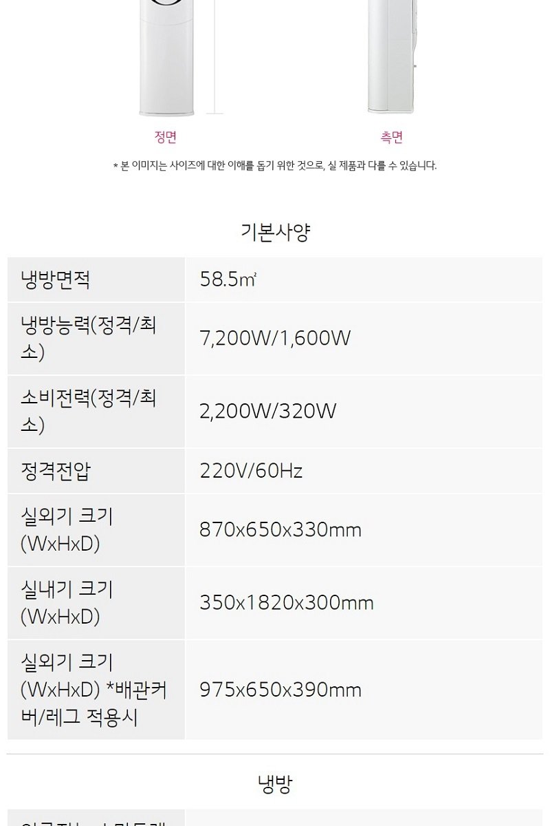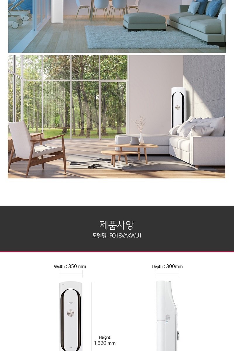 ├ 크기: 실내기(WxHxD) - 스탠드 : 350 x 1820 x 300mm