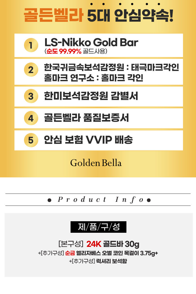 -목걸이 : 순도 99.5% 순금 / 길이 : 약45cm(여유줄포함) / 각인 : 995, 홀마크