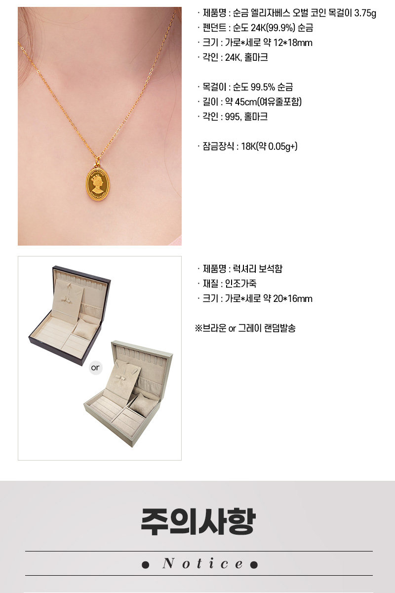* 순금 엘리자베스 오벌 코인 목걸이 3.75g