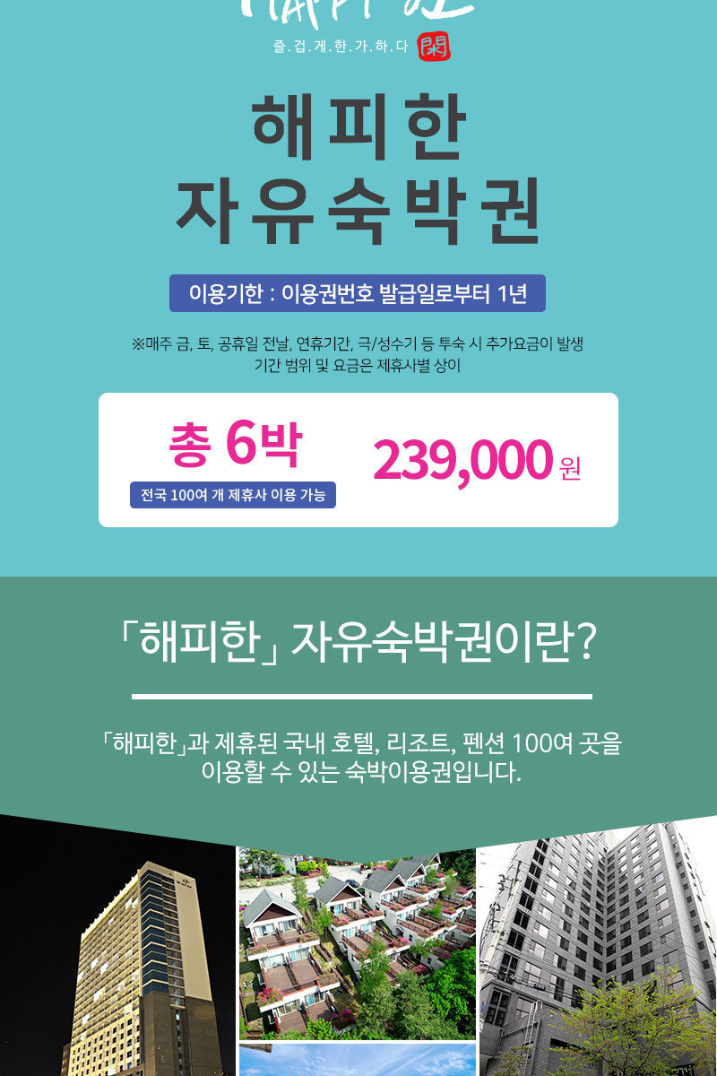 ▶ 본구성 : '해피한' 자유숙박권 총 6박