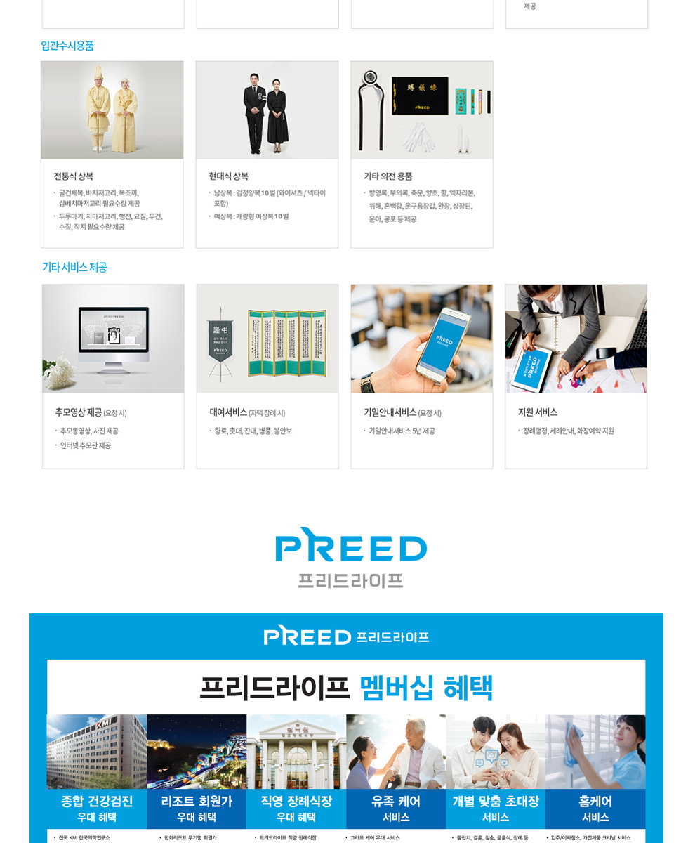 - 프리드라이프 직영 장례식장인 쉴낙원 김포, 인천, 경기, 오산동탄, 세종, 홍천, 남대전 장례식장 이용시 우대 할인 제공됩니다.