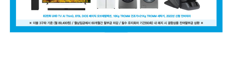 - 본 상품은 상조 부금 계약과 가전제품에 대한 할부매매 계약을 별도로 체결하는 결합상품입니다.