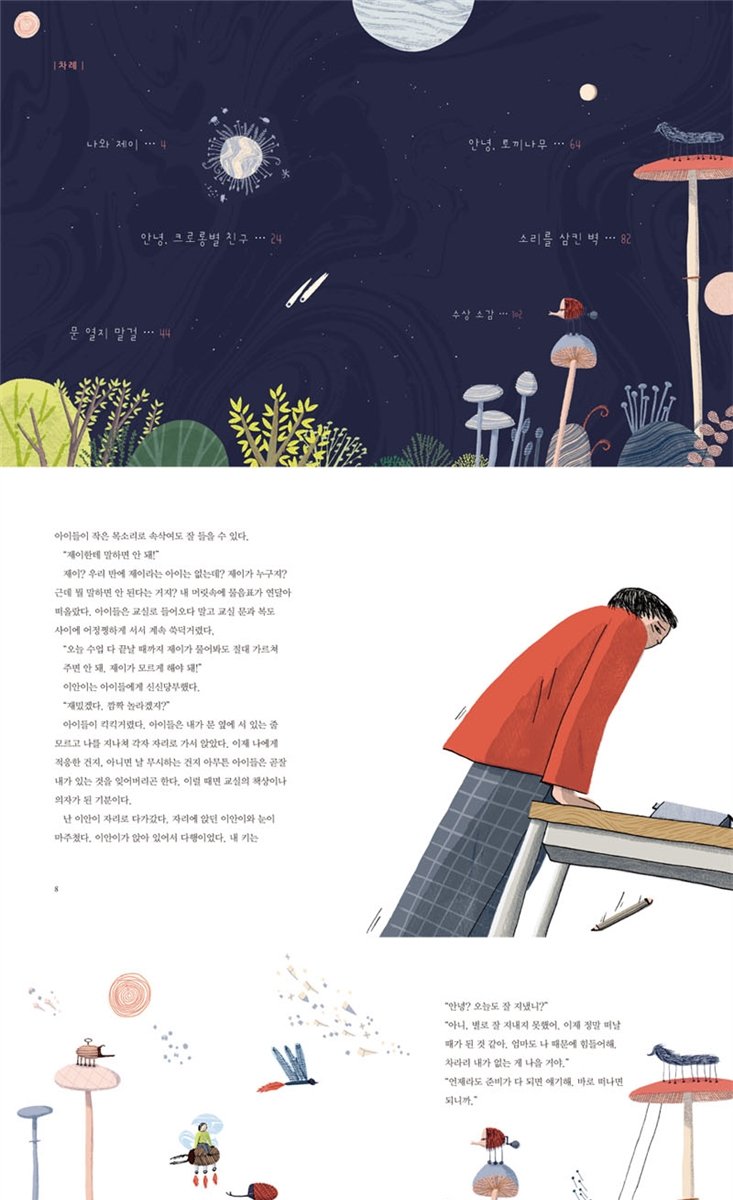 늘어난 수상작의 수만큼 전보다 더 치열한 심사를 거쳤던 제9회 웅진주니어 문학상, 그렇게 선발된 단편 우수작 다섯 편을 모은 『나와 제이』가 드디어 출간되었다. 전보다 많은 작품을 소개하기에 그만큼 다양한 색깔을 보여 준다는 점에서 이번 수상작들은 조금 더 특별하다. 그중에는 얼핏 아이들이 이해하기는 어렵지만, 대신 긴 여운과 진지한 고민을 던져 주는 작품도 많다.