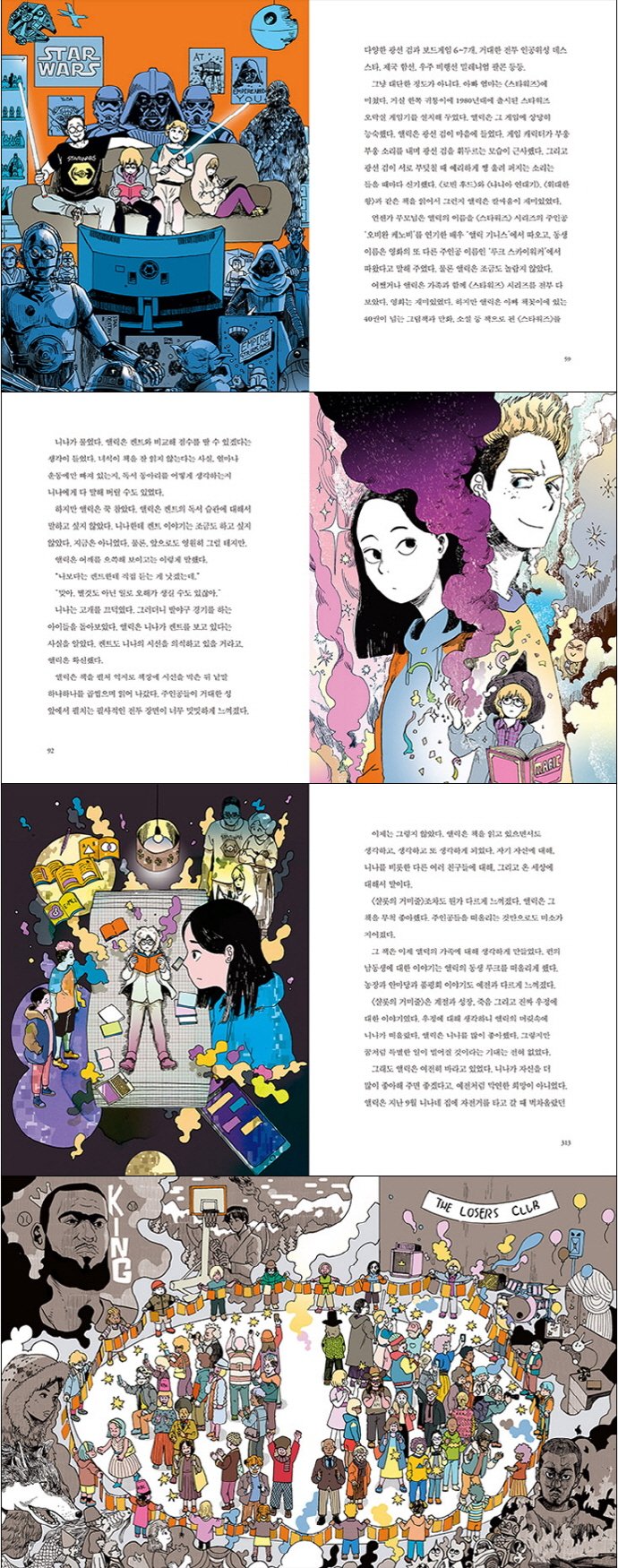 <잃어버린 책>은 새로운 이야기 세계로 향하는 문을 활짝 열어 주는 작품이다. 작품에는 우리가 읽었거나 들어 봤음 직한 책들과 책 속 주인공들이 등장해 눈길을 사로잡는다. 용미가 두고 내린 책 <샬롯의 거미줄>의 윌버를 비롯해, <에드워드 툴레인의 신기한 여행>의 에드워드, <사자와 마녀와 옷장>의 비버, <꼬마마녀>의 아브라삭스 등 작품 곳곳에서 숨은 그림 찾듯 친숙한 캐릭터들을 만나 이야기 나눌 수 있다. 혹시 책의 마녀를 만나러 떠난 용미와 한나의 모험이 성공했던 것일까 <잃어버린 책>은 독자들로 하여금 마지막 책장을 덮은 순간 또 다른 책을 펼치도록 이끌며 책의 마녀의 부활을 소리 높여 외친다.