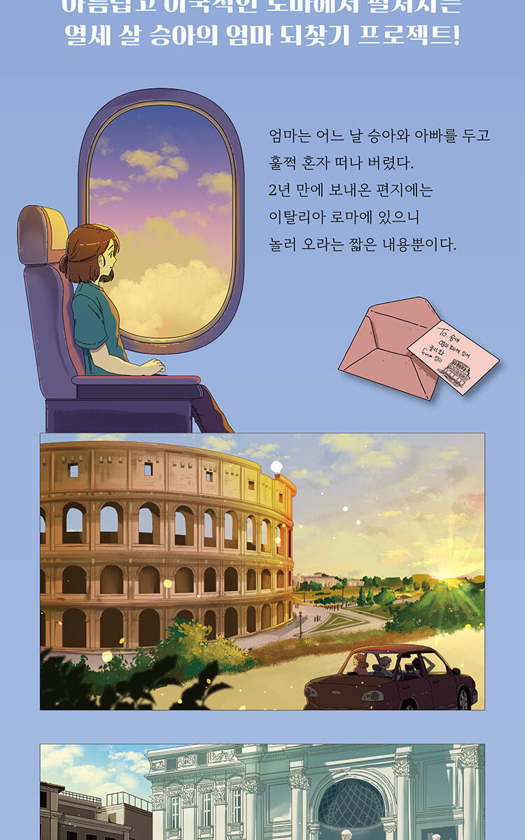 승아는 어느 날 갑자기 아빠와 자신을 두고 혼자 외국으로 떠나버린 엄마를 이해하기 힘들다. 엄마를 다시 한국에 데리고 오겠다는 생각에 로마까지 가지만, 어쩐지 엄마는 한국이 아닌 로마에서 더 즐겁고 행복해 보인다. 승아는 엄마와 다시 한국으로 돌아갈 수 있을까