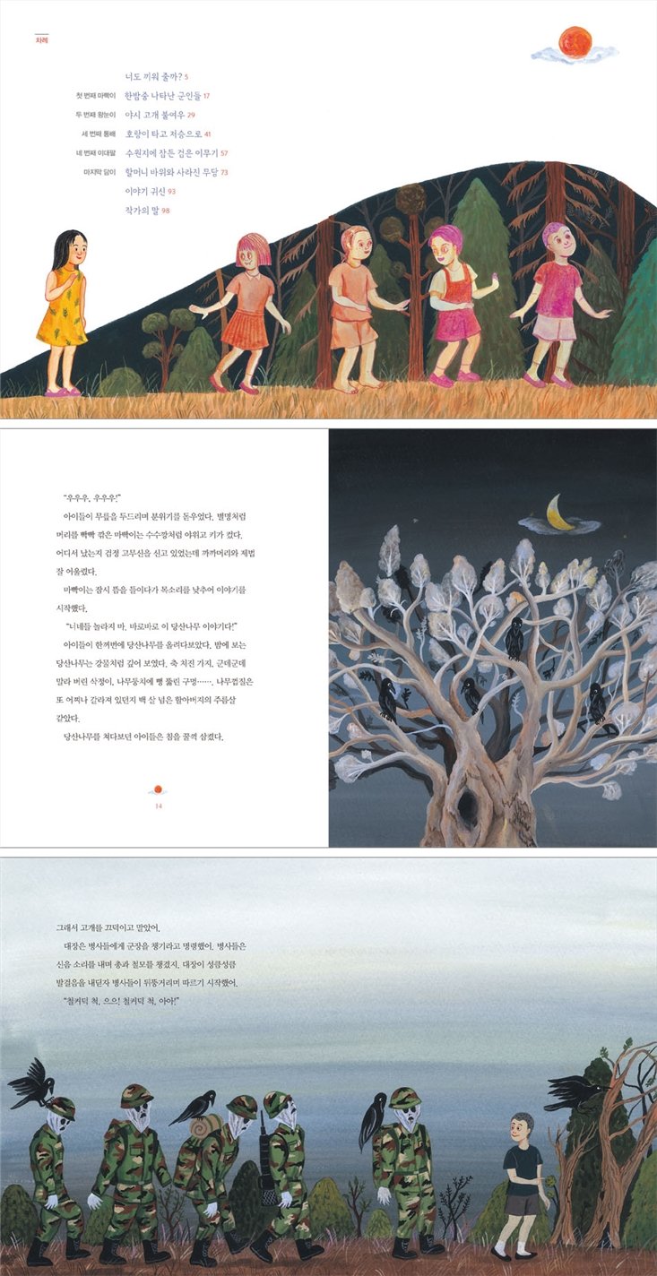 너도 끼워 줄까 … 5 첫 번째 마빡이 한밤중 나타난 군인들 … 17 두 번째 왕눈이 야시 고개 불여우 … 29 세 번째 통배 호랑이 타고 저승으로 … 41 네 번째 이대팔 수원지에 잠든 검은 이무기 … 57 마지막 담이 할머니 바위와 사라진 무당 … 73 이야기 귀신 … 93 작가의 말 … 98
