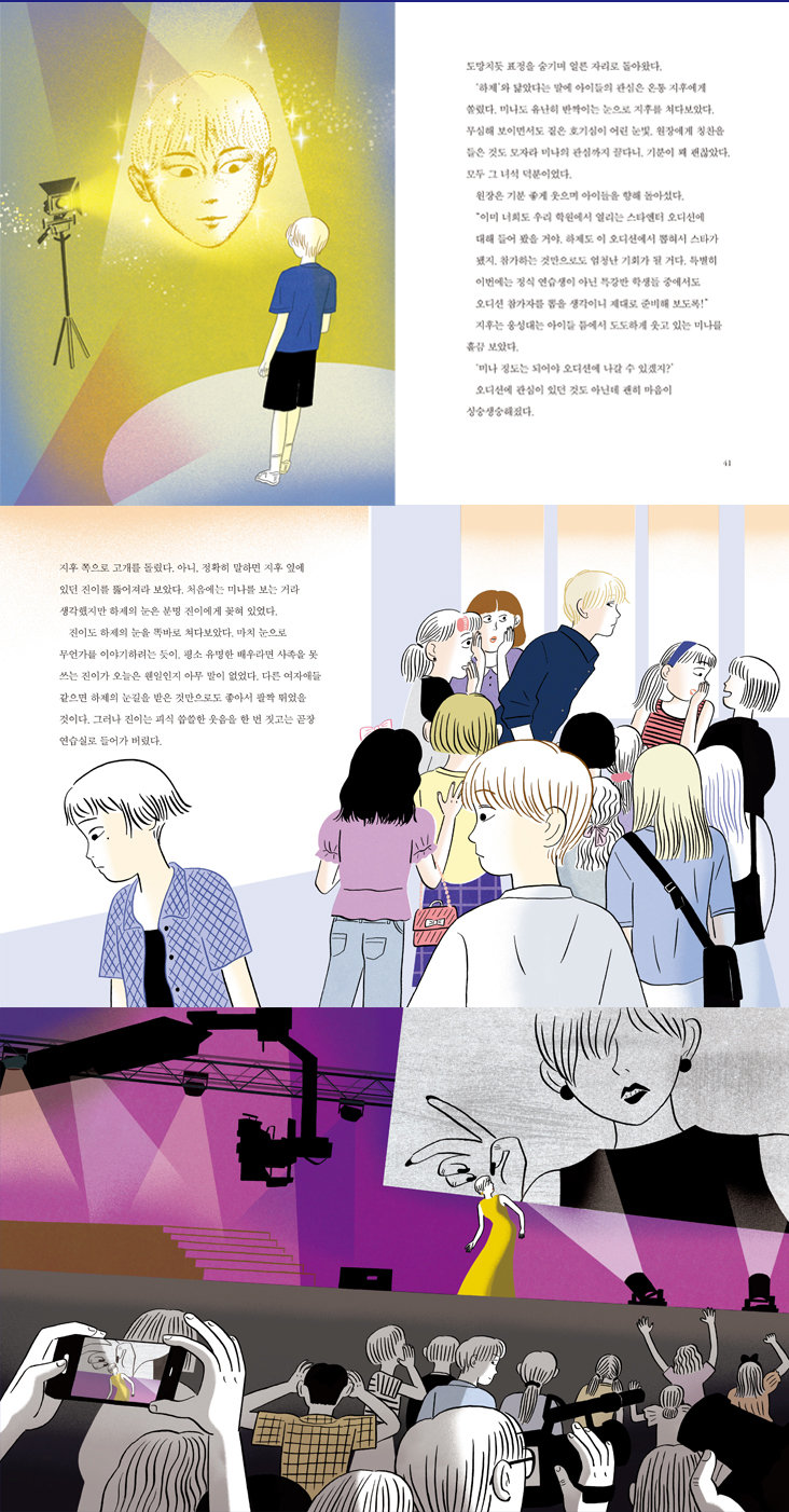 스타가 되기 위해 연예기획사에 모인 아이들 사이에서 벌어지는 미스터리한 사건을 다룬 작품입니다. 친구들의 능숙한 연기가 부러워서였을까요 연기 특강에 참여하면서 경쟁심이 불타오른 주인공 지후에게 의문의 금빛 가루가 찾아오고, 지후는 점차 다른 사람처럼 변해 갑니다. 금빛 가루에 몸을 맡기면 마리오네트가 된 듯 자기도 모르게 실감나는 연기를 펼쳤습니다. 마법 같은 행운이었지요.