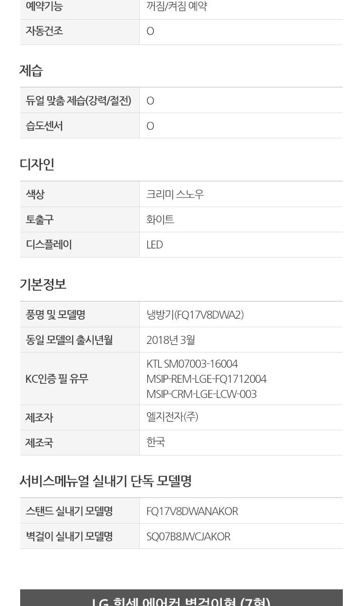 | 품명 및 모델명 | FQ17V8DWA2 |