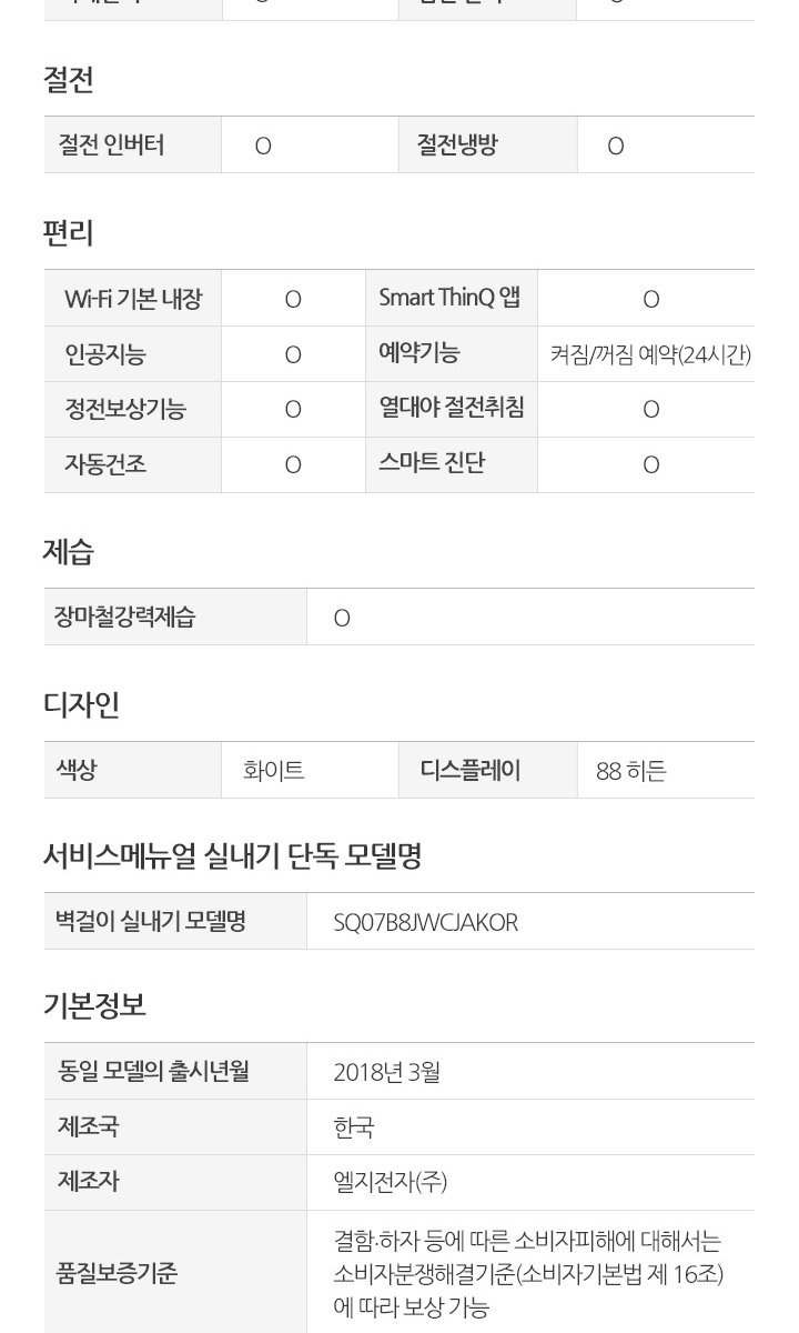 └ 제조원 / 원산지: LG전자 / 한국