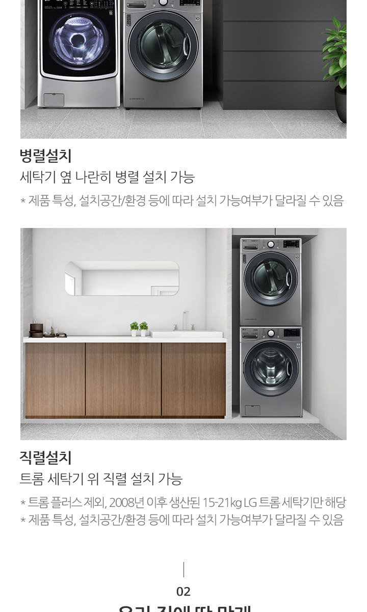 | 크기, 용량, 형태 | 의류건조기 : 700 x 990 x 770mm 드럼세탁기 : 700 x 990 x 770mm |