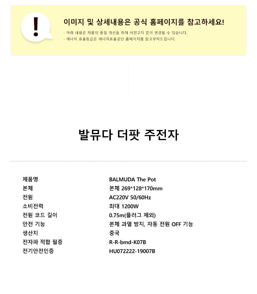 | 제조자,수입품의 경우 수입자를 함께 표기(병행수입의 경우 병행수입 여부로 대체 가능) | 발뮤다 |